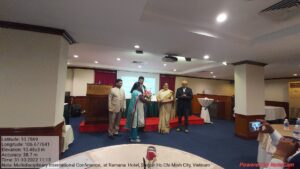 Mrs. Dr. Shaila Sakhla felicitate to Ms. (Dr.) Meera Srivastava during conference given Life time Achievement Award through Society of Science Technology and Humanity.